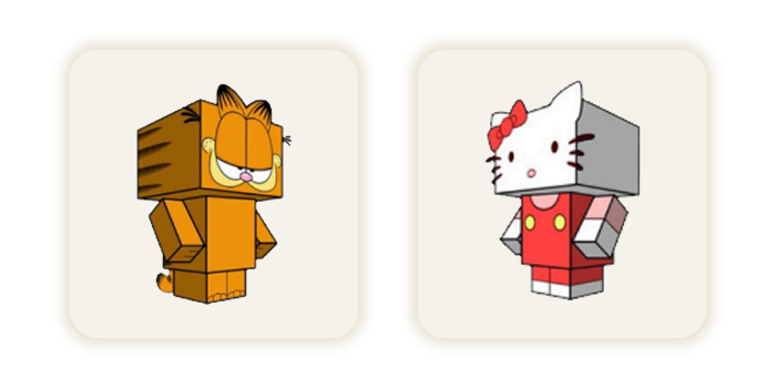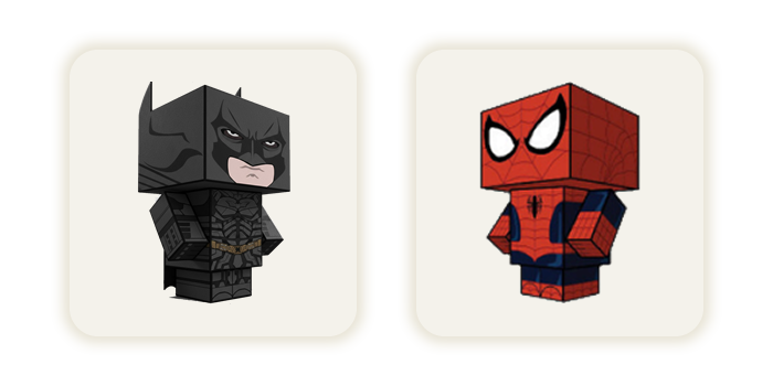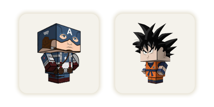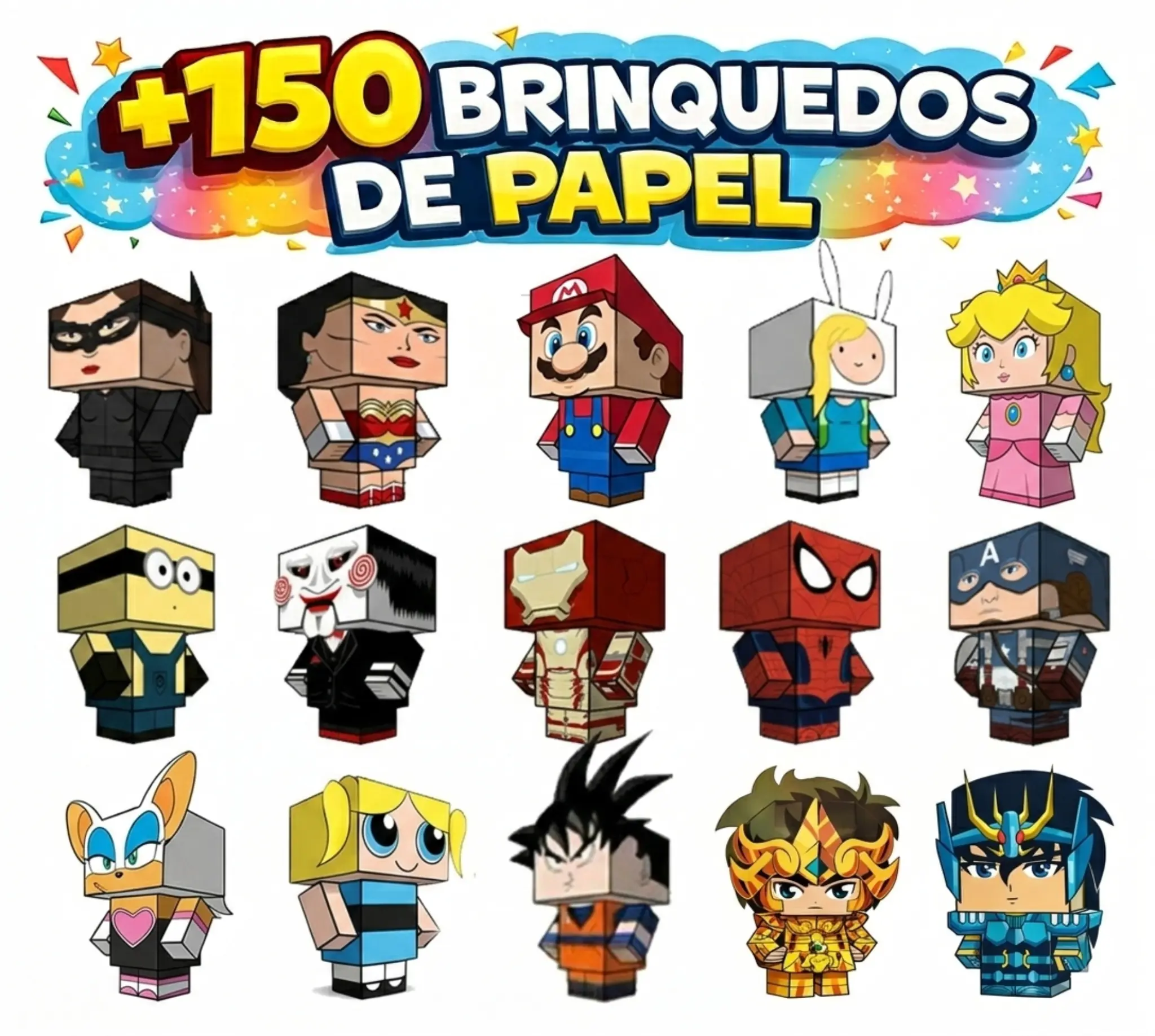 São +150 Brinquedos de Papel de várias categorias como: Animais, Carros, Desenhos, Games, Heróis, Minecraft, Pokémon, Roblox e muitos outros personagens.